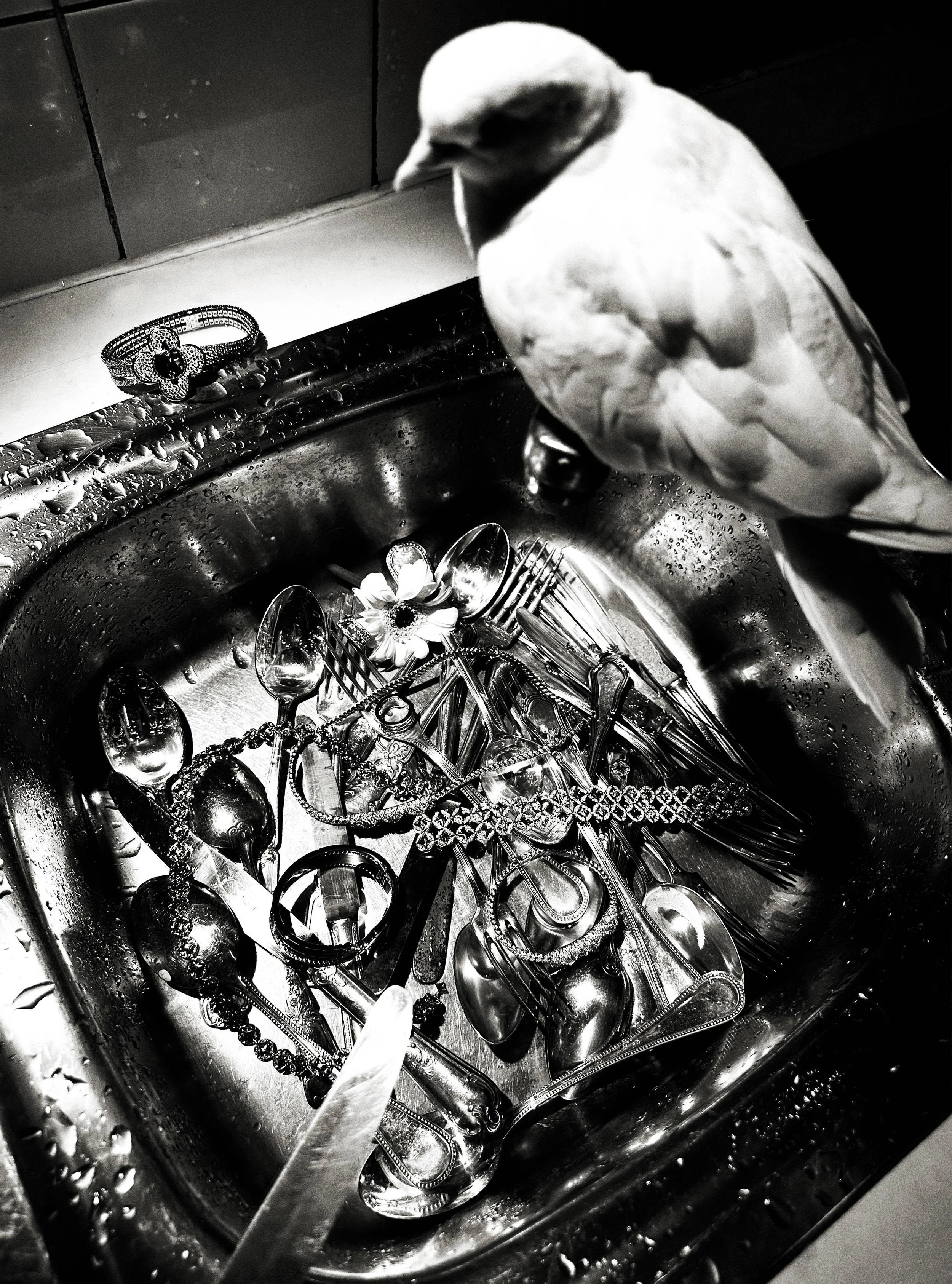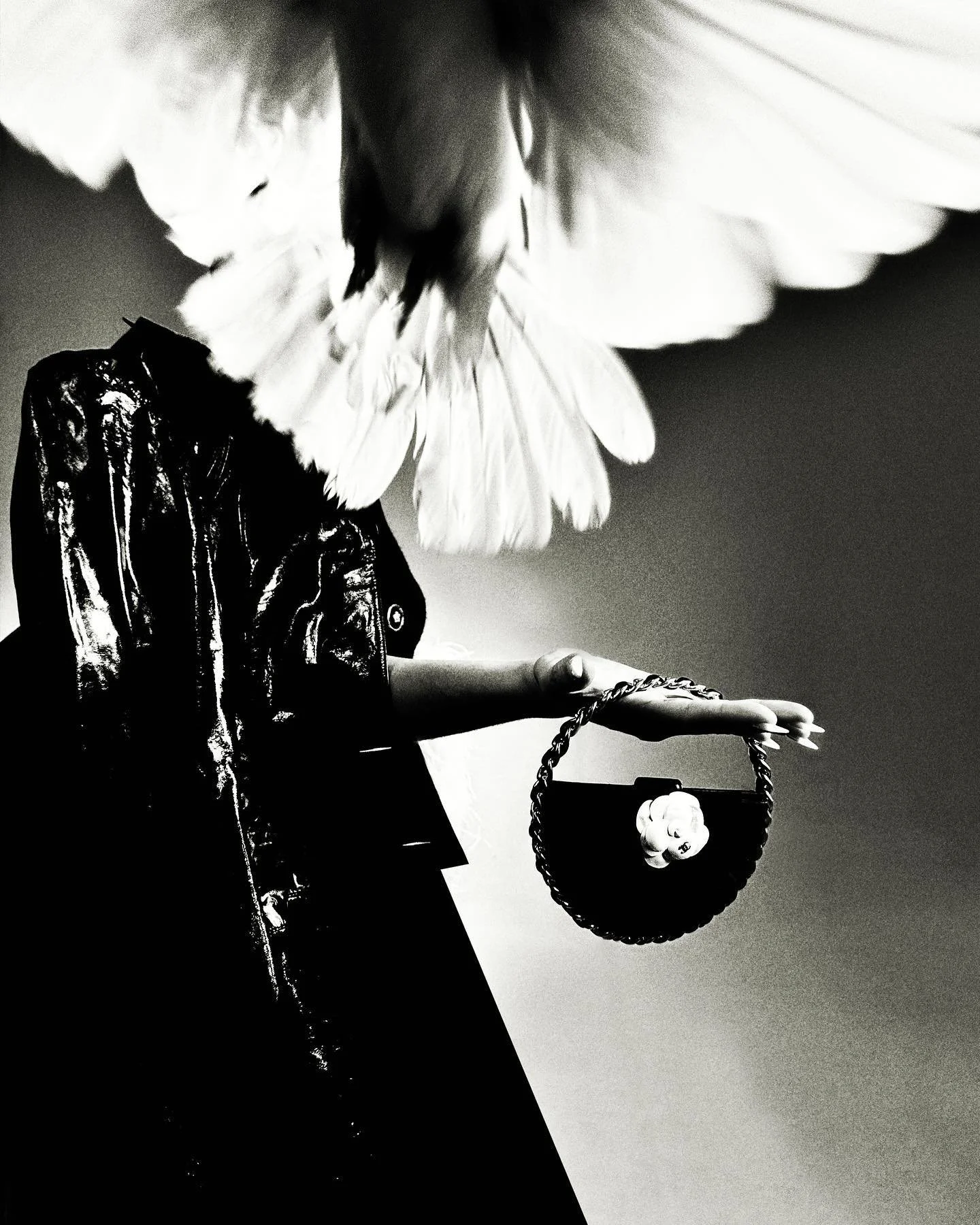 With candles and white birds and Louis Vuitton jewelry in the sink, it’s as if we’re entering an astral plane of being, postulated by classical, medieval, oriental, and esoteric philosophies and mystery religions.
