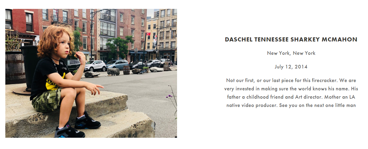 “My mother loves a lot of middle names,” McMahon says, “and I followed her lead, so Daschel’s full name is Daschel Tennessee Sharkey McMahon. Tennessee is to represent both my Grandma Audrey and my “Papa” Madison, as they were both born there. While they met and spent their 57 years together in Los Angeles, I love that, in a way, they were fated in their foundation…I wanted my son to know all things good in me, and thus him, flow from them.”