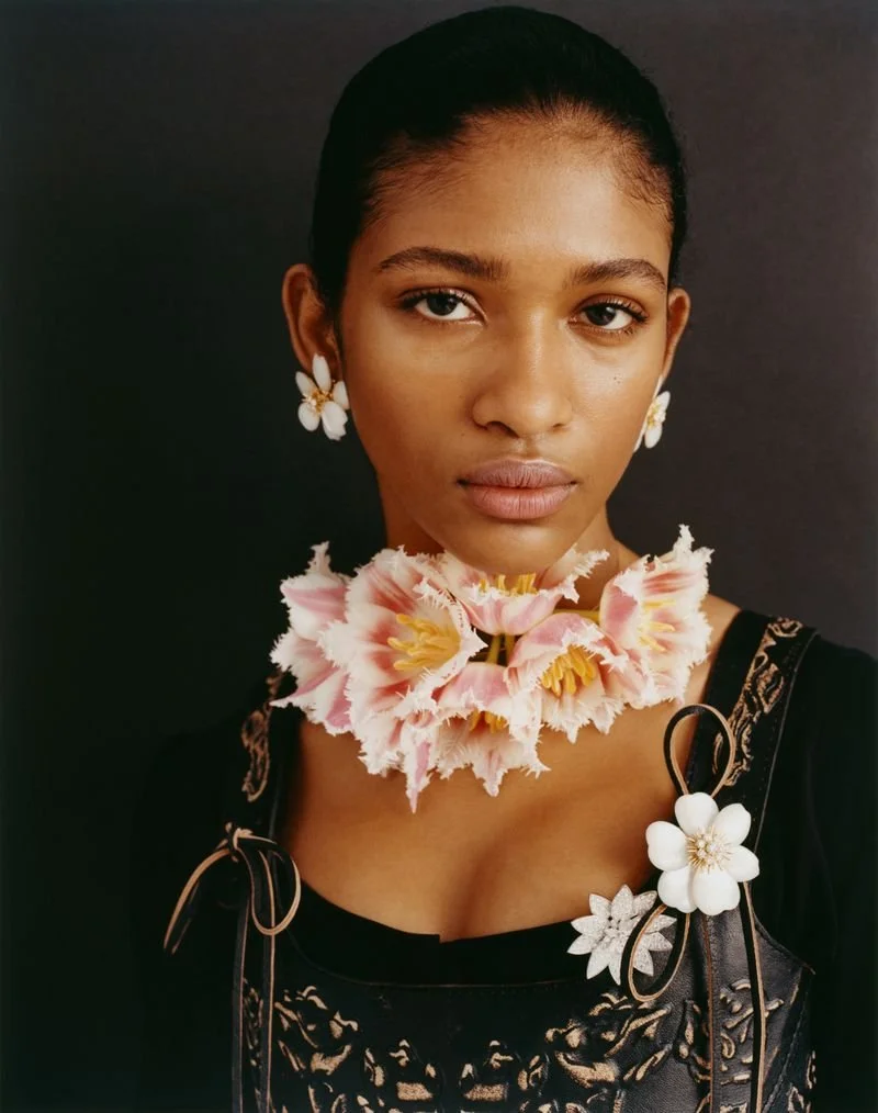 /Rising model Shiraruby, 5’11” of English-born, Jamaican-Sri-Lankan beauty lineage, strikes poses of regal elegance in a fashion story ‘Outside Sometimes’ in Vogue Ukraine. Sam Ranger styles the Jamaica-raised model in striking statement luxury jewelry lensed by Ben Parks [IG]. / Hair by Eliot McQueen; makeup by Kirstin Piggott