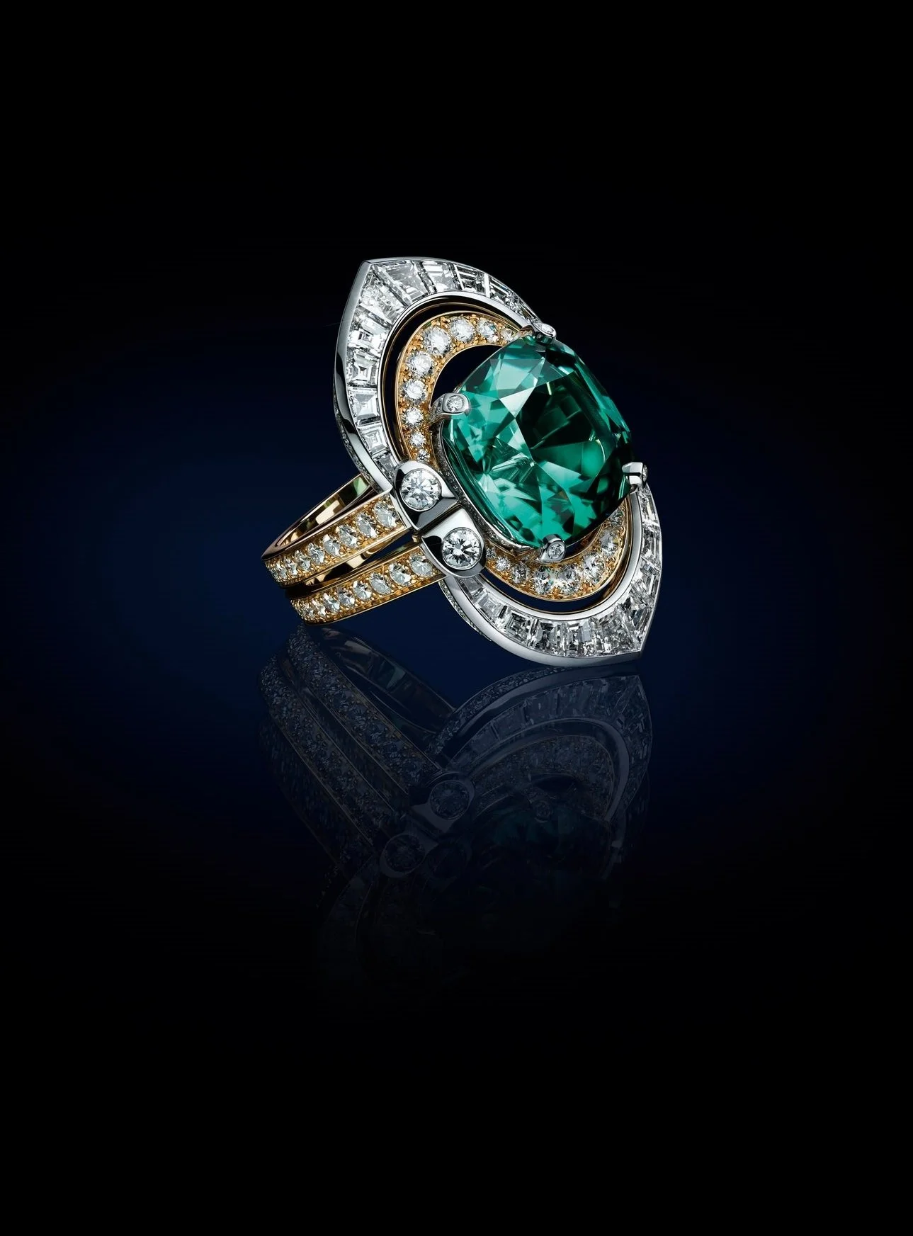 “The Bravery collection is a metaphor for Louis Vuitton’s life. In the first chapter, unveiled in June 2021, we presented the different stages of the journey he undertook. Now, we are celebrating the highlight of his career – the invention of the iconic trunk and all its distinctive characteristics.” The Magnetisme necklace brings together all the codes that have inspired this collection. The metal tips of the trunk are interpreted in yellow gold and the diamond patterns between the tourmalines, while the square clasp is transformed into an incredible 20.29-carat yellow sapphire suspended by a symbolic V-shape set with baguette-cut diamonds.
