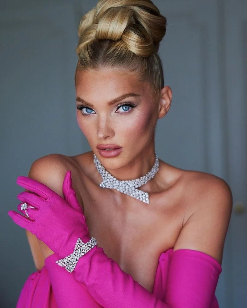 /Elsa Hosk stuns in pink passion Valentino elegance and Messika precious-jewels glamour, photographed in the south of France by Derek Kettela as ‘Messika Rocks Cannes’. / Hair by Danielle Priano; makeup by Hung Vanngo