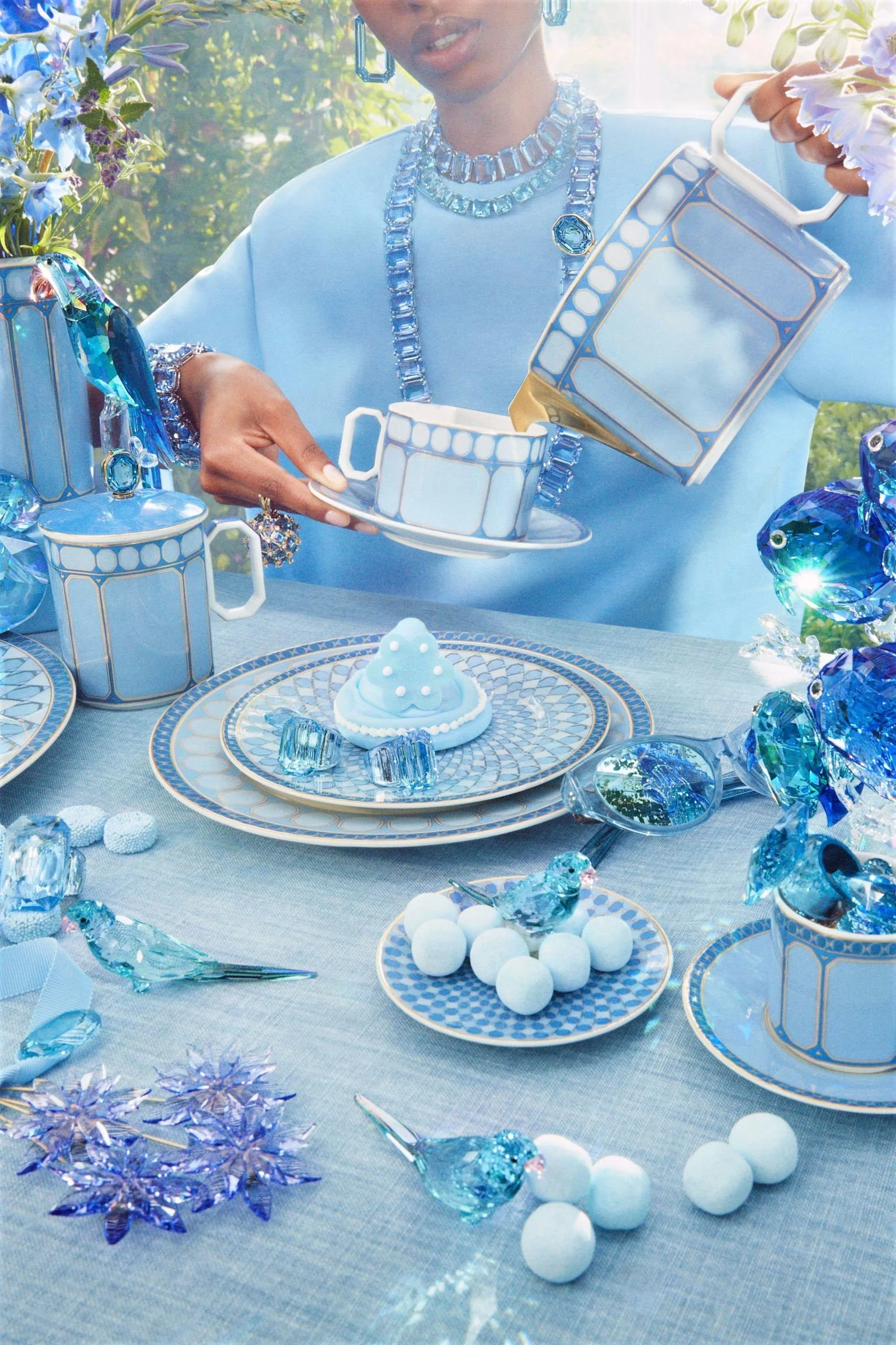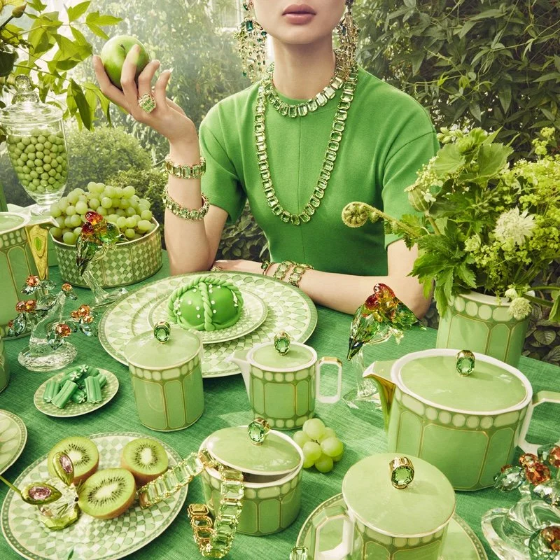 /Swarovski X Rosenthal have joined forces to bring a revitalized and engaged Swarovski jewelry style to Rosenthal porcelain. If you look carefully, even eyeglasses are in the mix — one piece being more visually scrumptious than the other in a campaign that rockets further into the stratosphere after the release of Swarovski’s spring 2022 Bella Hadid campaign.