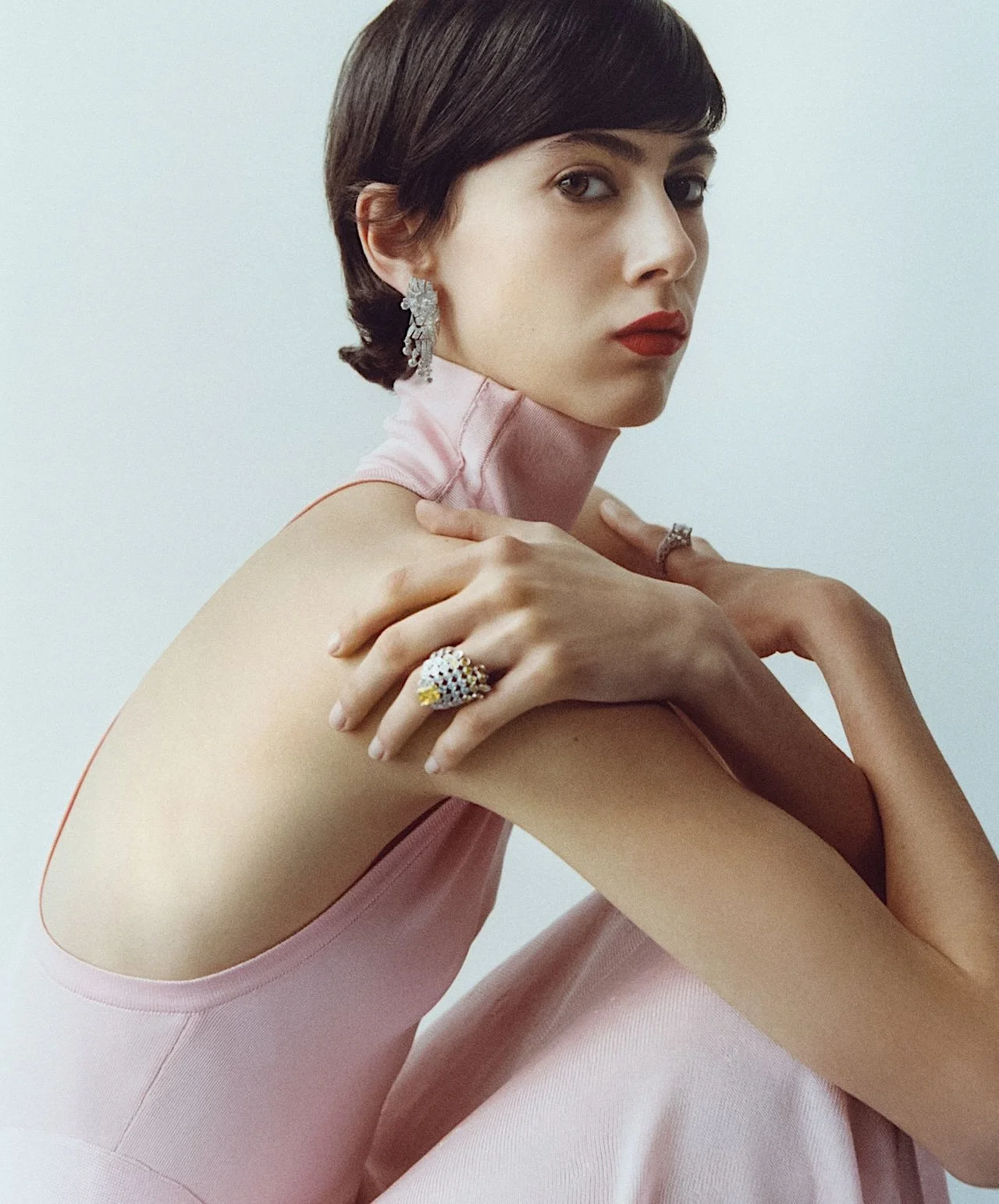 Above: Pomellato high jewelry; Bottega Veneta dress.