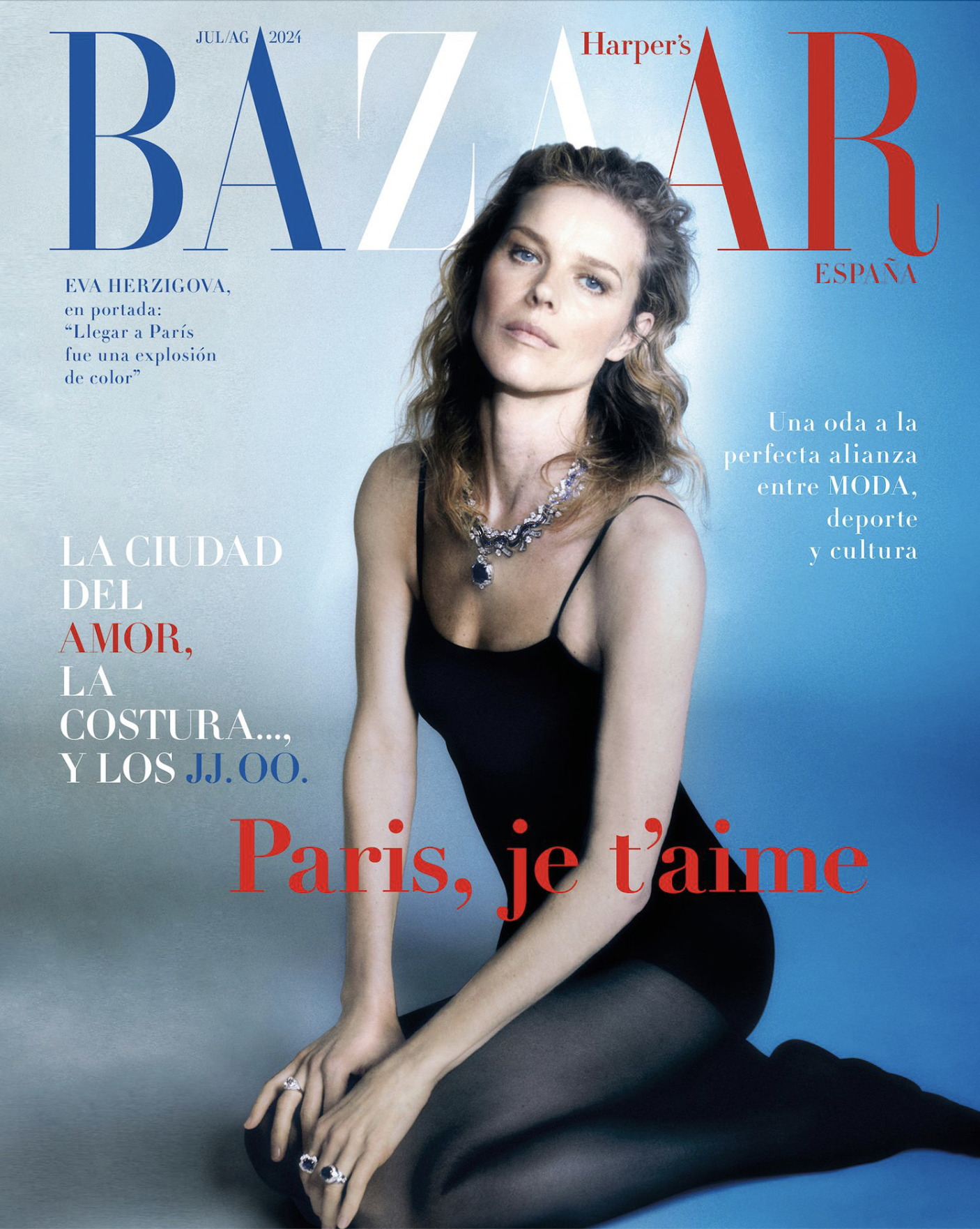 Eva Herzigova Covers Harper's Bazaar Spain in 'Paris I Love You' by Xavi Gordo
