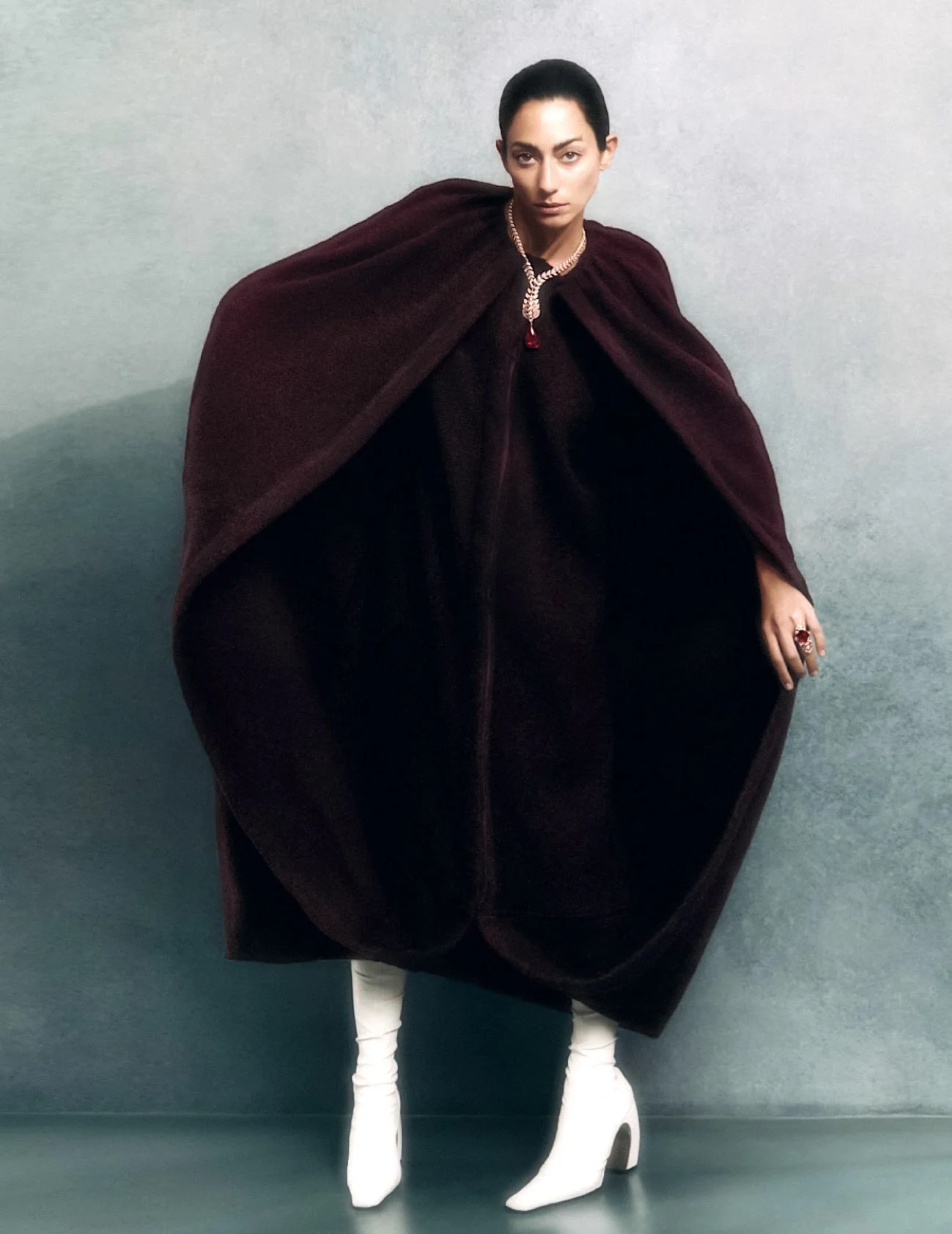 Speaking of the global fashion industry and her luxury fashion appeal, the artist and model tells Cuervo that she has been welcomed into fashion “as myself, not as a facade.” Observationally, AOC underscores this statement about Conie Vallese.