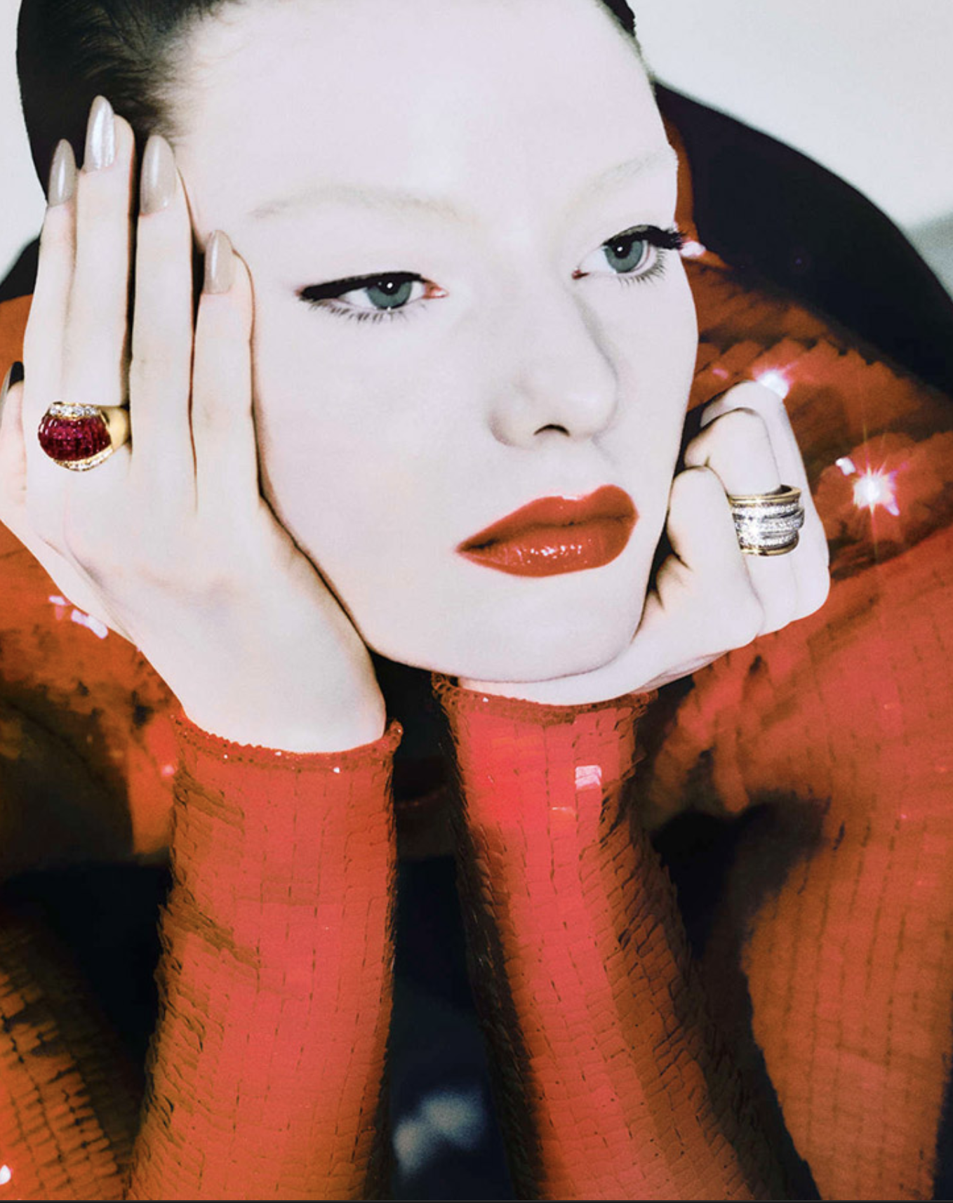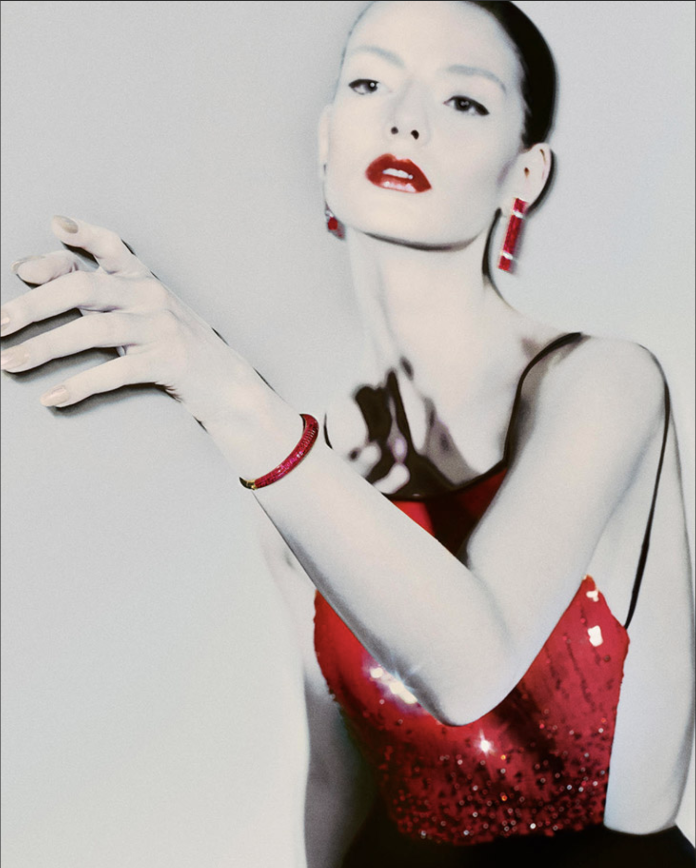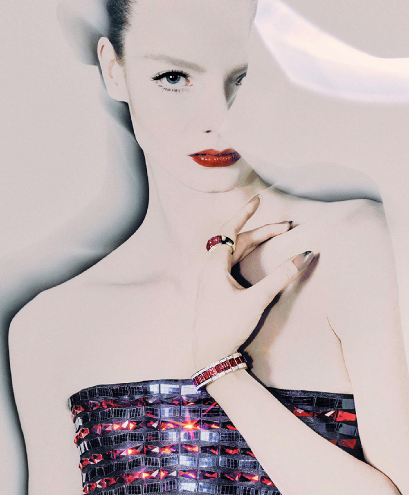 Porodina turns to her muse, American model Alyda Grace, styled by Mauro Demestria in the new Armani high jewelry images. / Hair by Pierpaolo Lai; makeup by Patrick Glatthaar