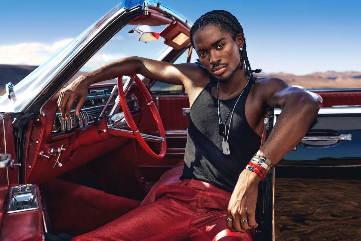 The campaign unveils the D-Vibes (Diamond Vibes) collection, as a French-twist update on the classic diamond tennis bracelet. On Jenner, we see a pileup of gold disks and diamonds dazzling across stacked rings, bracelets, and necklaces. Mason is adorned in the new XL My Move bracelet, stacked with Move Titanium bracelets and rings, and a military-inspired Move GI necklace.