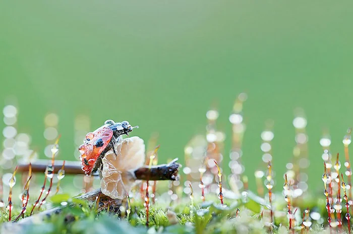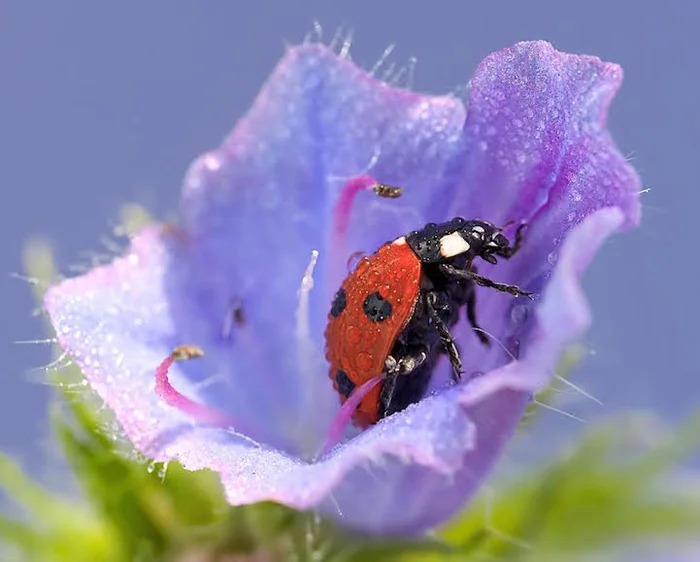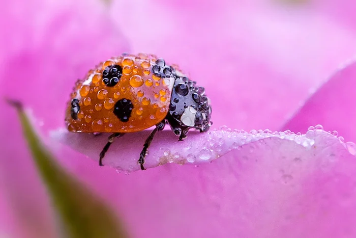 Photographer Tomasz Skoczen has spent years watching ladybugs in his Irish garden. His macro lens shots of ladybugs glistening with rain or dew are enchanting. Skoczen observes that ladybugs are very fast and therefore, difficult to shoot.
