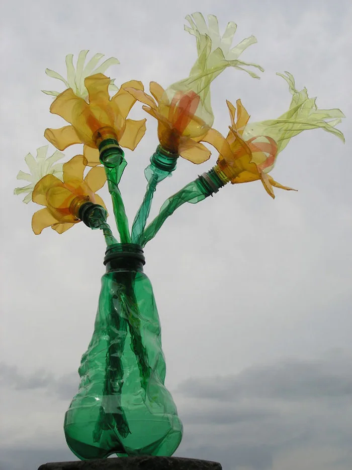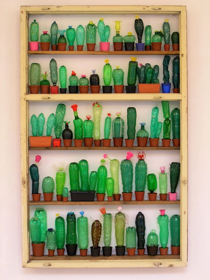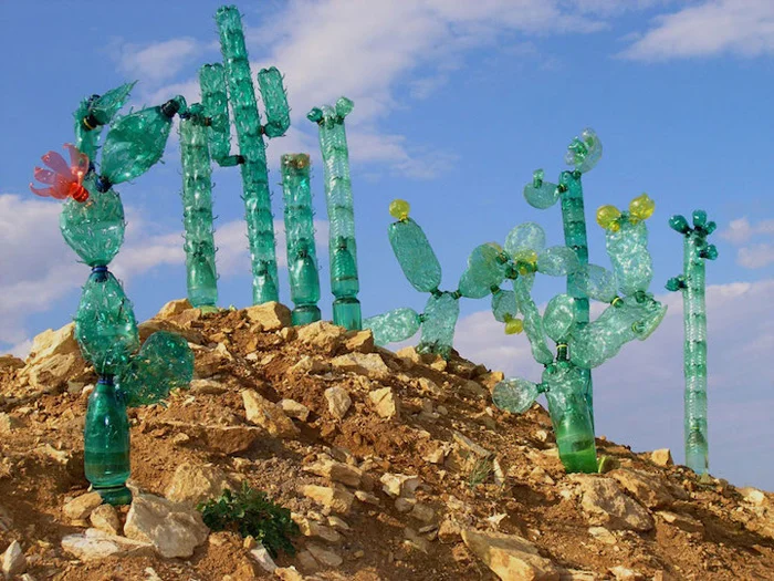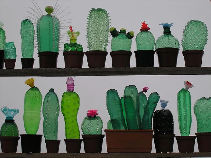Czech-based artist Veronika Richterová (see websites)upcycles plastic PET bottles, transforming them into charming representations of blooming cacti, orchids, roses and other botanical sculptures.