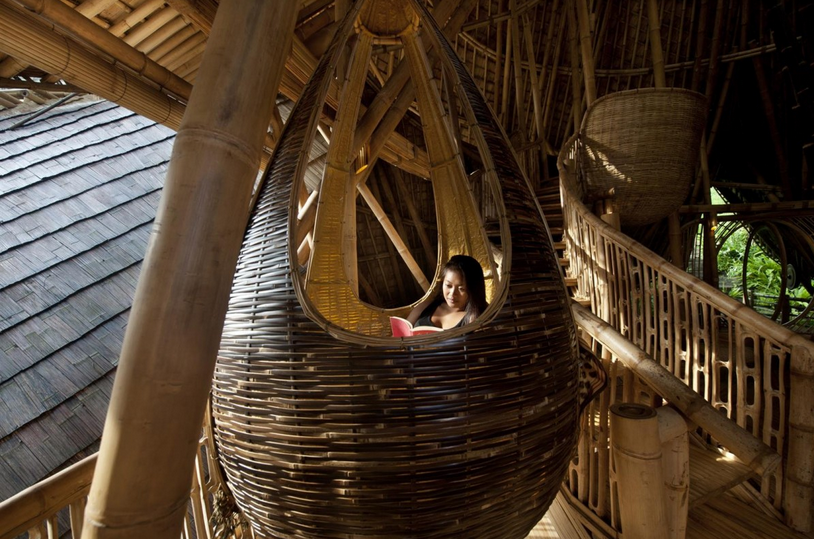 Returning to Bali, Elora founded Ibuku, self-described as a team of designers and builders who aspire to make the most of bamboo and local talented craftspeople and young minds. Ibuki develops a balance of ancient and new ideas in its commitment to building almost entirely handmade villas and bespoke furniture. A major project for Hardy is Green Village,a resort community along the Ayung River, 20 minutes from the Green School.