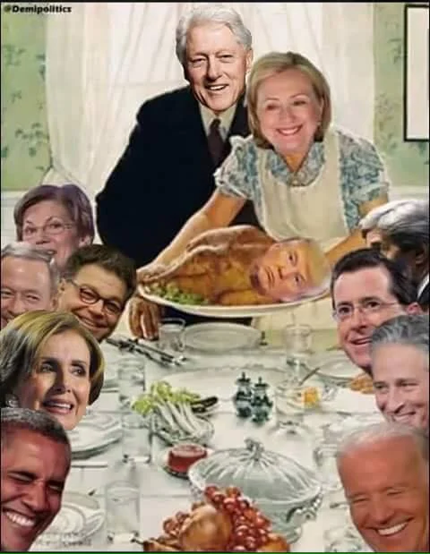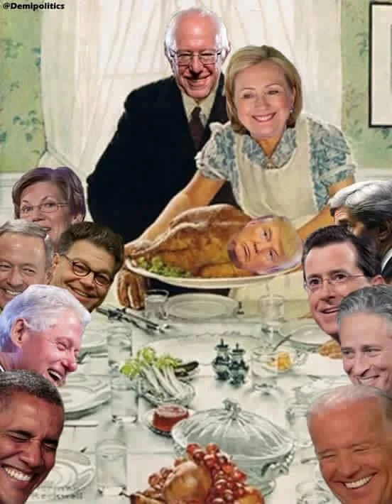 Actually, there was quite a bustle going on behind the scenes and in about 15-20 minutes, version two made its appearance. LOL. In fact, I never suggested that Bernie be thrown out of the picture, and we all agreed that Hillary should roast The Donald because 1) she will should Trump get the nomination or run as an Independent; and 2) the way Bernie yells and throws his arms up in the air all the time, he really shouldn't be carving the turkey. Somebody could get hurt. Still it was nice to see Nancy get an invite after I kicked some turkey butt to arrange it.
