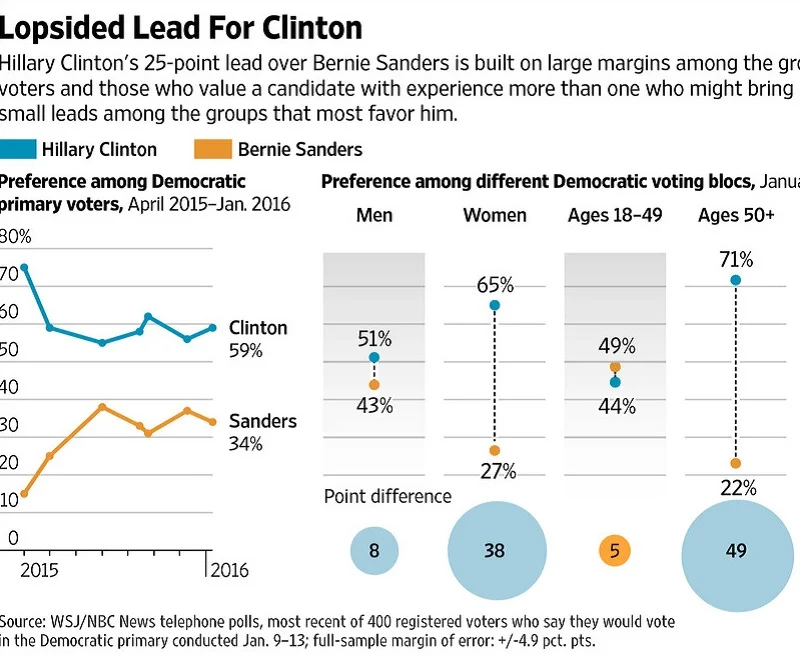 /Hillary Clintn's Lead Over bernie Sanders Widens WSJ