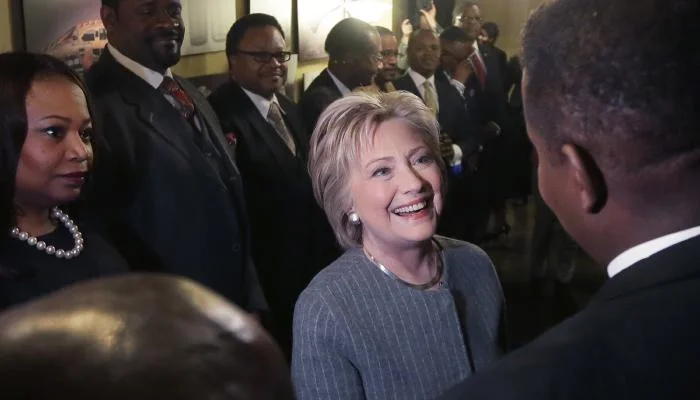 Presidential candidate Hillary Clinton spoke to a mostly black congregation at the Holy Ghost Cathedral. Introduced by Bishop Corletta J. Vaughn, Hillary stood before the congregation in a run-down neighborhood, hearing Bishop Corletta J. Vaughn introduce her as the former first lady who taught women how to "take a licking and keep on ticking."