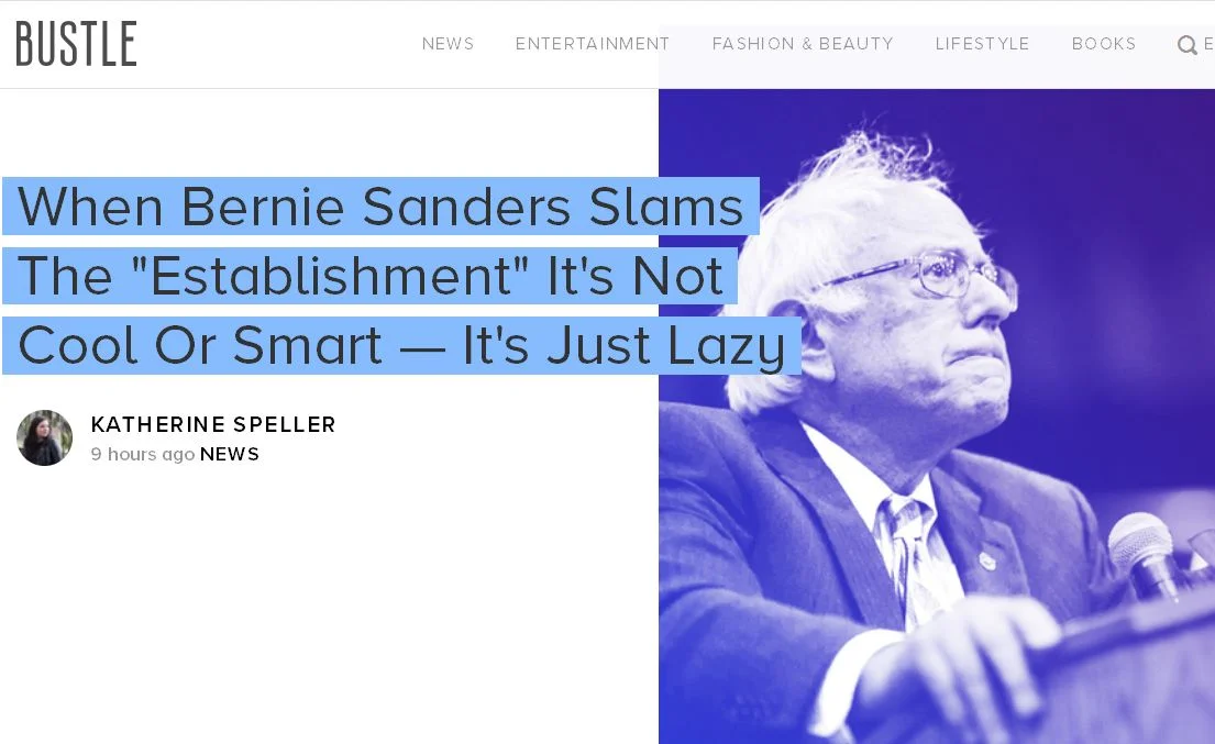 /When Bernie Sanders Slams the 'Establishment' It's Not Cool or Smart -- It's Just Lazy by Katherine Speller Bustle