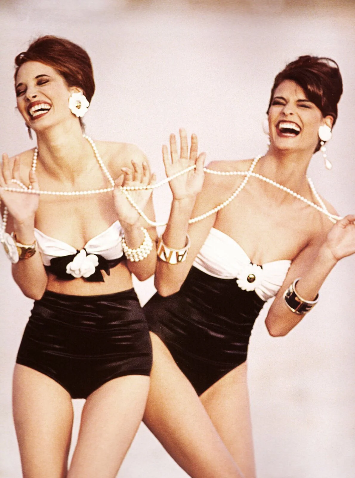 Christy Turlington & Linda Evangelista | Patrick Demarchelier | US Vogue April 1991 | Designers: Beachside