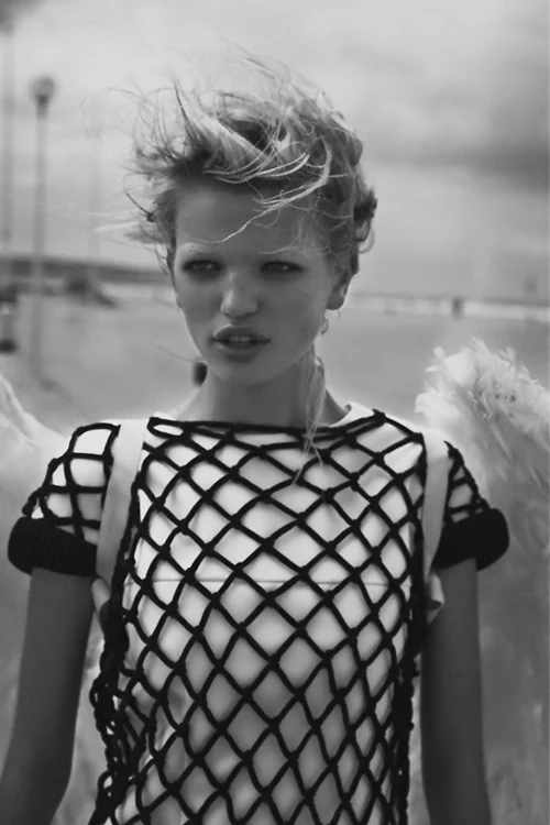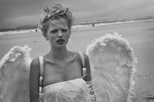 In its poignant, sensually intimate connections between the young, nubile angel Daphne — who wears both white and black wings making her man’s savior and seductress — Lindbergh channels the eternal symbol of rejuvenation and rebirth represented by the young female ‘maiden’ .
