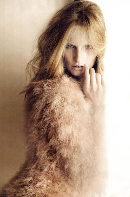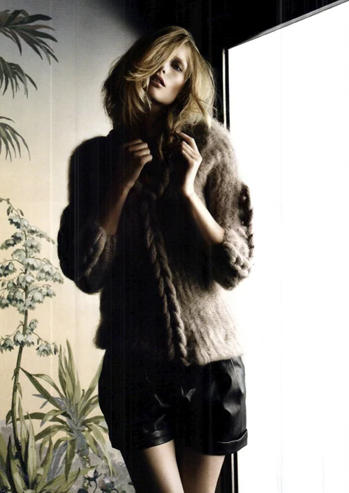 /Raffaella Campeggi styles Katrin Thormann in tactile, feminine, warm and cozy wear for Paul Schmidt’s style statement ‘Controluce’, published in Marie Claire Italy’s October 2011 issue.