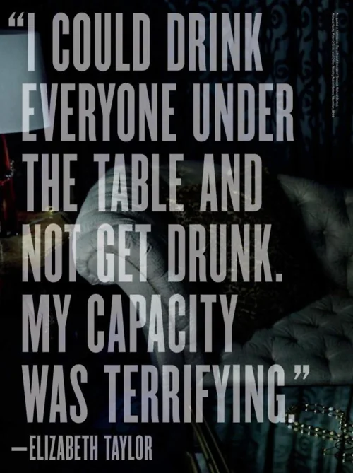 /“I Could Drink Everyone Under the Table and Not Get Drunk. My Capacity Was Terrifying.” - Elizabeth Taylor