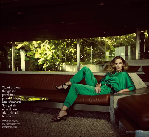 /Thelma Mcquillan styles Emily Blunt as a modern fashionista, sitting pretty poolside in Jason Bell’s ‘Blunt Force’ resort editorial for Harper’s Bazaar Australia November issue.