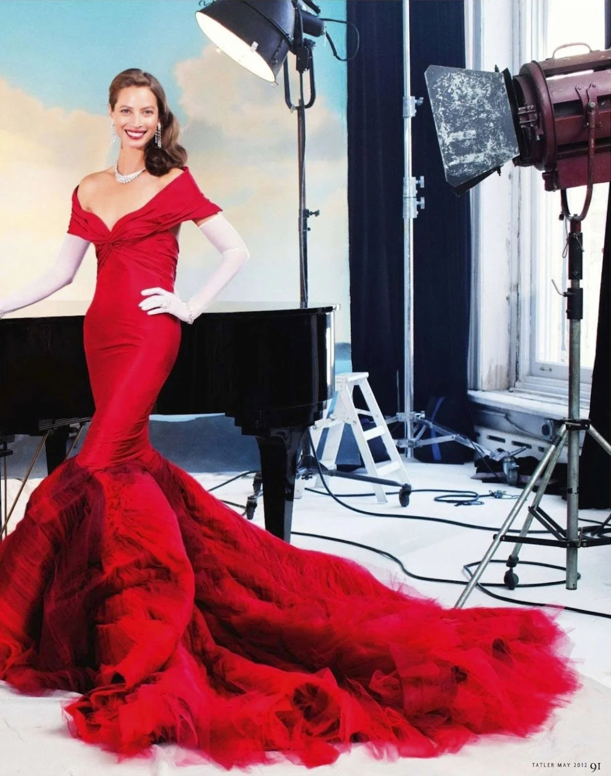 Lensed by Arthur Elgort for Tatler UK’s May 2012 issue, Christy is composed from every angle on the set — before and holding the camers — or holding court in her office, styled by Anya Ziourova for ‘The Crew’.
