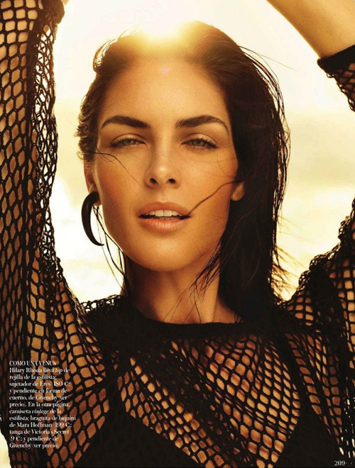 /Hilary Rhoda is a bronze goddess specializing in edgy beah looks styled by Katie Mossman for Vogue Spain’s June issue. Photographer Miguel Reveriego hits the golden sands, lensing Hilary in ‘El Cuerpo’.