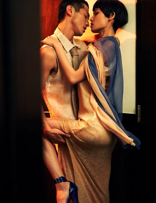 /Takayuki Sekiya styles Wang Xiao and Daisuke Ueda in this sensually complex editorial with plenty of game playing. ‘Feel Love’ is photographed by Takahiro Ogawa for WestEast’s spring/summer issue.