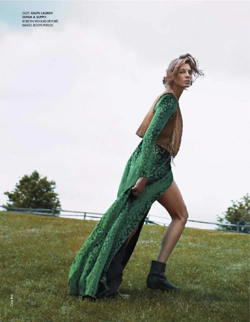 /Anne-Marie Brouillet styles nature girl Daria Werbowy in ‘Wild Spirit’, lensed by Cass Bird for Elle France’s July issue.