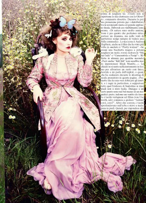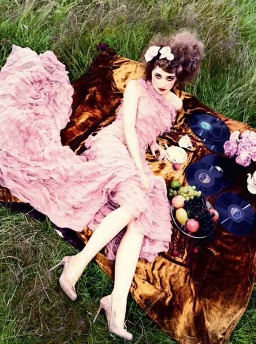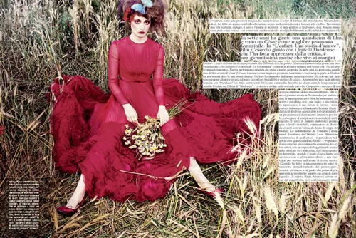 /Deborah François frolicks in a romantic meadow, styled byAlice Gentilucci in flowing, long dressed for Ellen von Unwerth’sVogue Italia September editorial.