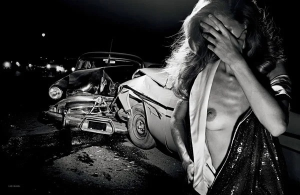The story line of ‘Grace Undone’, seen in Interview’s November issue, is an elegant Malgosia Bela’s apparent post-car-crash trauma in which she comes undone, so to speak, as a lost but ferocious femme without a lot of clothes. Ludivine Poiblanc styles what clothes Malgosia is wearing in this sensual feast for inquiring eyes. /Hair by Didier Malige; makeup by Val Garland~ Anne