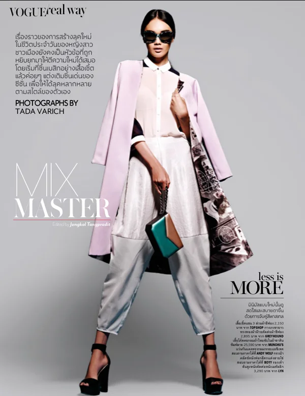 Jongkol Tangpradit styles model Palida Thanametpiya in key looks of the season, lensed by Tada Varich for Vogue Thailand February 2014 as ‘Mix Master’.