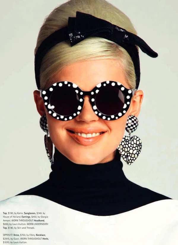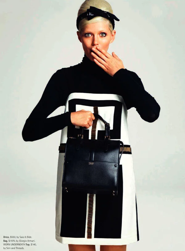 /Model Alys Hale strikes a series of quirky poses in ‘Black and White and Mod All Over’, styled by Fiona Kowalski. Chris Colls snaps the rather stilted scene for Madison Magazine’s May issue.