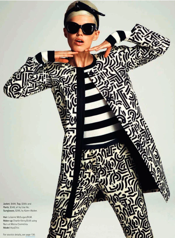 Model Alys Hale strikes a series of quirky poses in ‘Black and White and Mod All Over’, styled by Fiona Kowalski. Chris Colls snaps the rather stilted scene for Madison Magazine’s May issue.