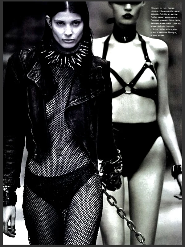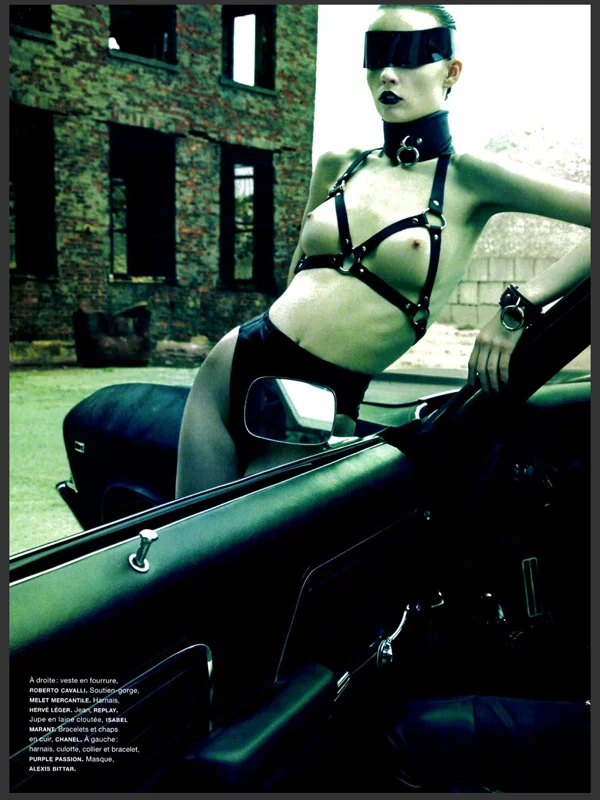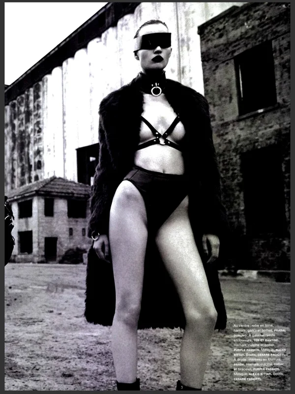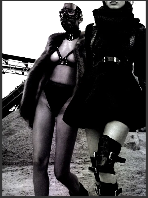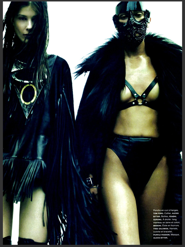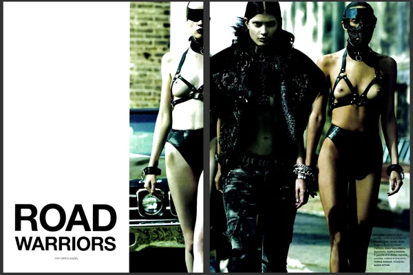 /In ‘Road Warriors’, Greg Kadel captures strong femmes Larissa Hofmann, Anna Schilling and Flo Dron for Numero #146, out this September. The shoot has a rebel feel to it, with styling contributed by Elisabeth Sulcer and lots of leather, chains and masks giving an aggressive, wild feel to the editorial. Hair by Dennis Lanni and make up by Frank B.