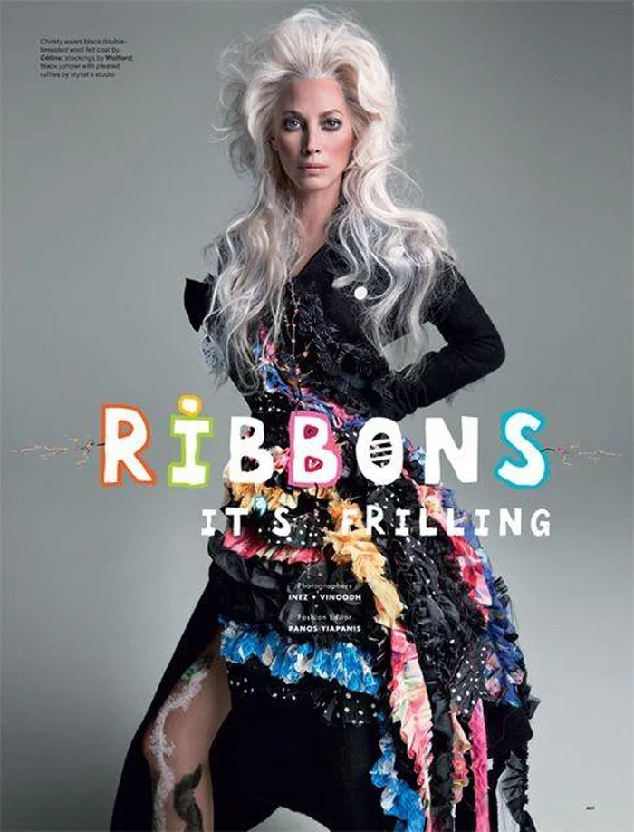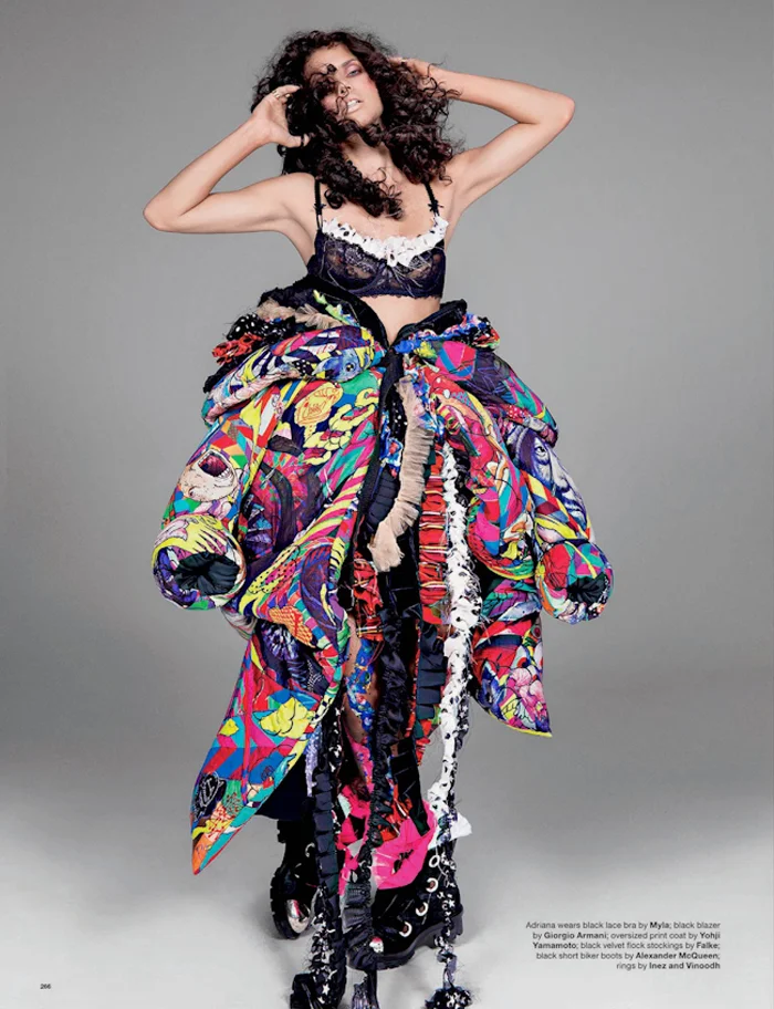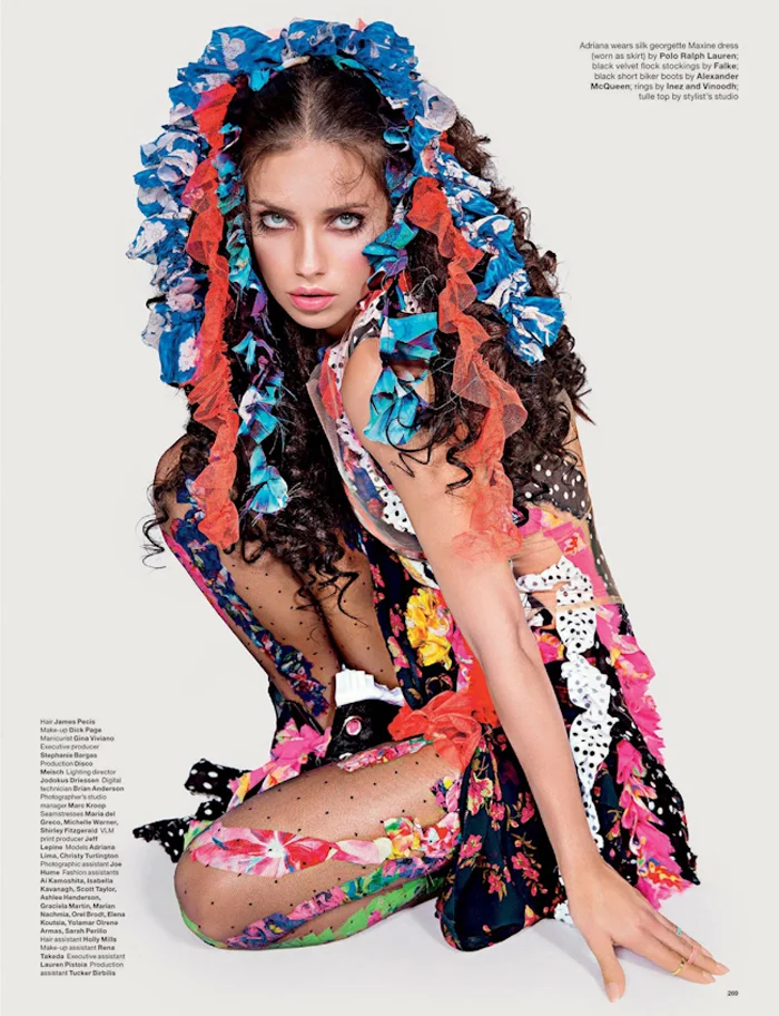 /As a pattern extravaganza sweeps the spring 2015 designer collections, supermodels Christy Turlington and Adriana Lima launch our style imagination brain matter in LOVE magazine #12’s fall issue. Styled by Panos Yiapanis, Inez & Vinoodh make the dizzying, romantic, Marie Antoinette feeling fashion capture ‘Ribbons’ It’s Frillying.