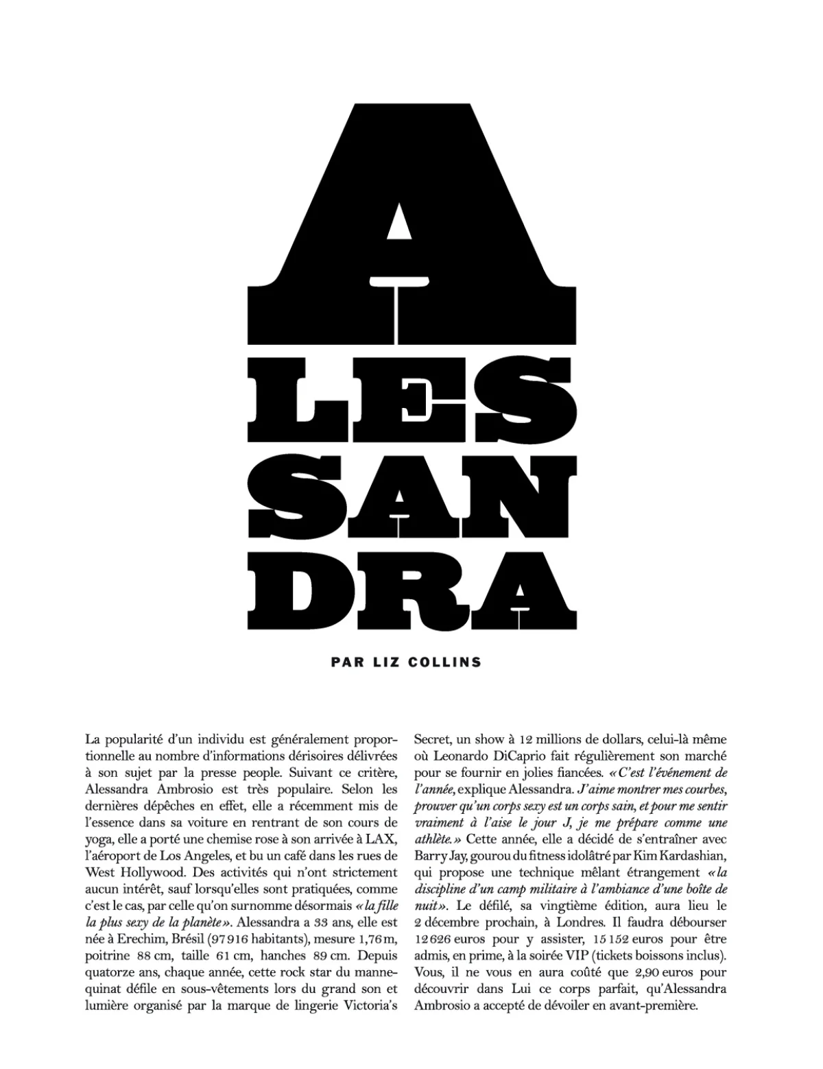 /Top model Alessandra Ambrosio is lensed by Liz Collins for Lui magazine’s November issue. Anna Schiffel styles Alessandra with skimpy bottoms and men’s ties. / Hair by Vi Sapyyapy; makeup by William Bartel