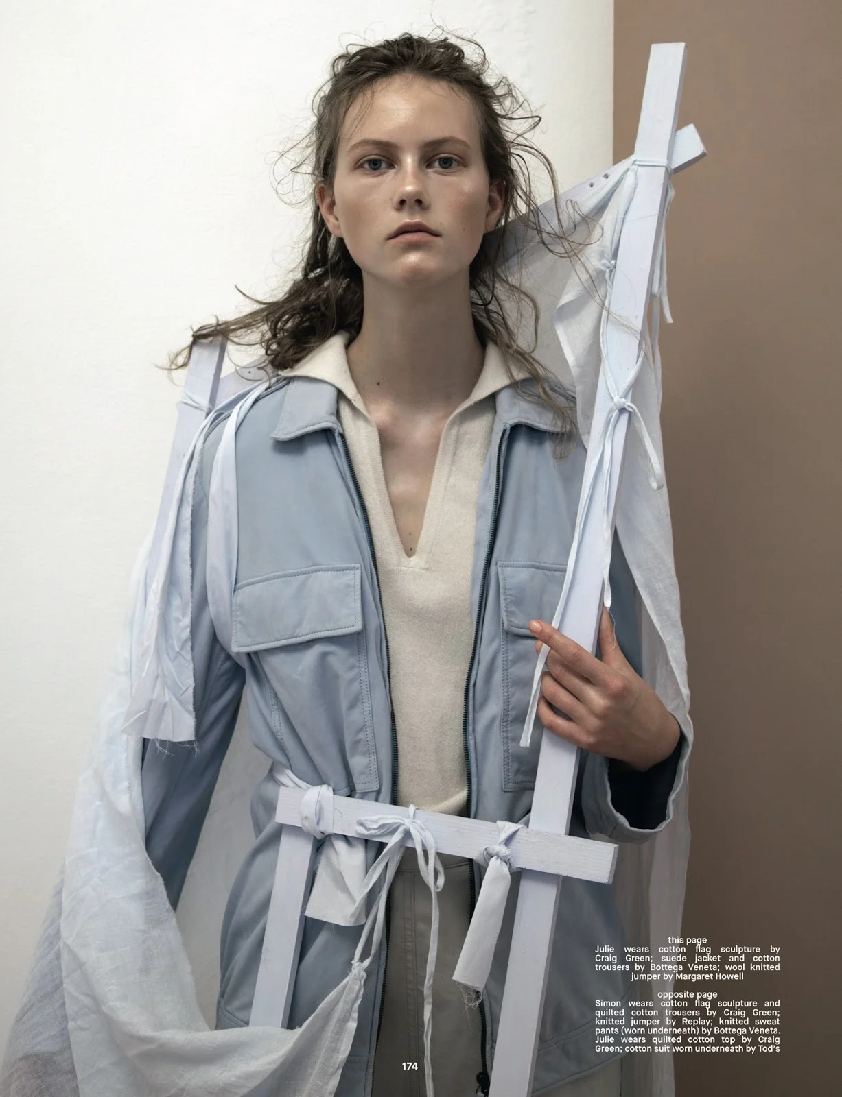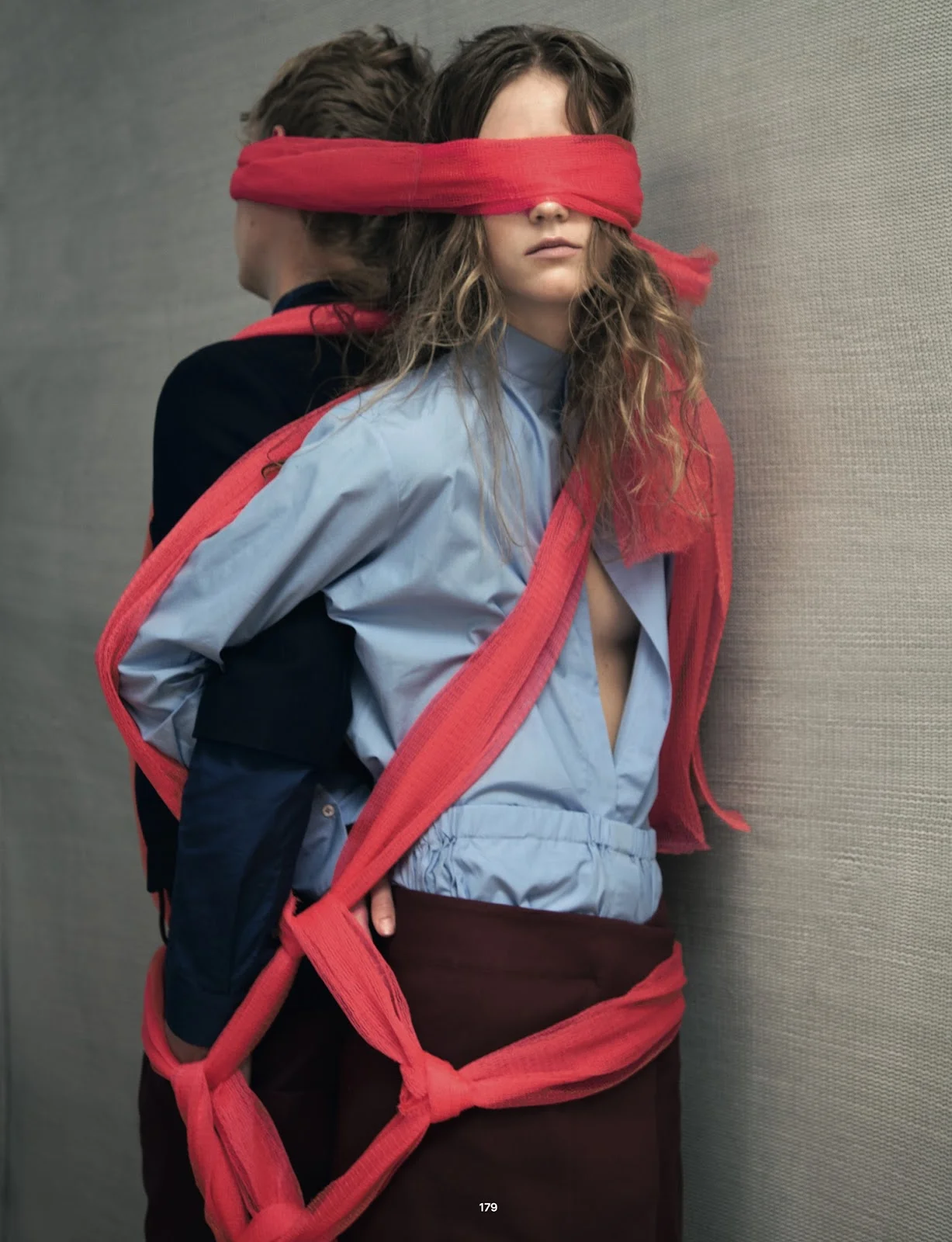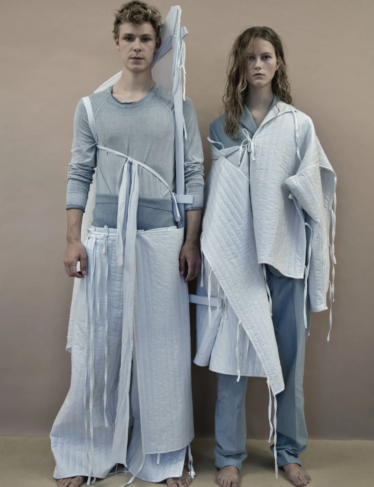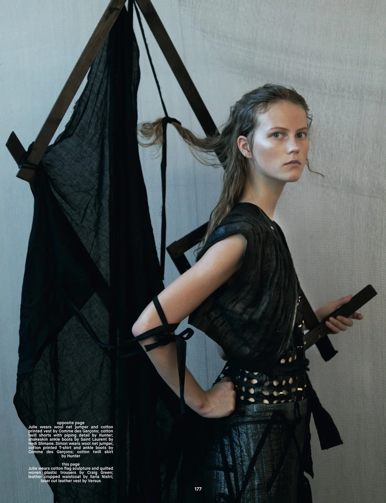 Models Julie Hoomans and Simon Fitskie explore the duality of male/female relaitonships, female strength, nature and artistry in this Jackie Nickerson studio editorial ‘Double Vision’. Robbie Spencer styles the duo for Dazed Winter 2014. / Hair by Tina Outen; makeup by Thomas de Kluyer