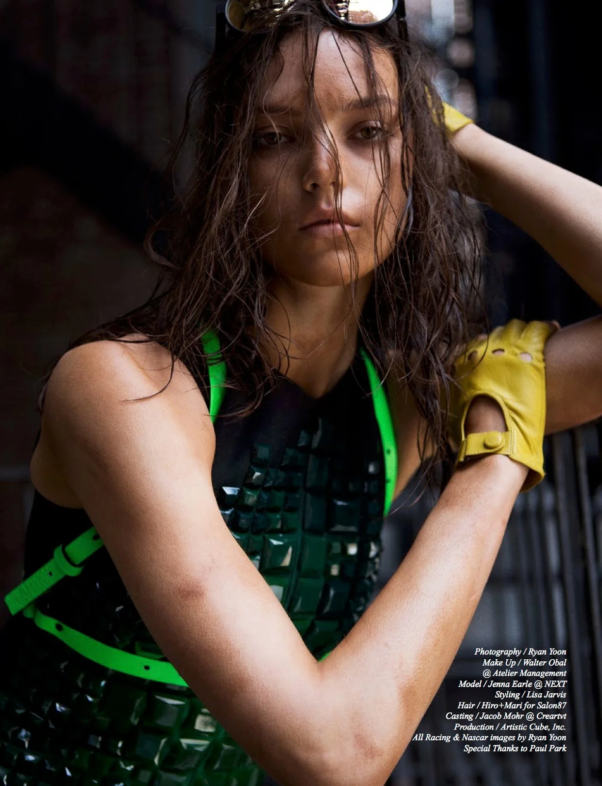 /Model Jenna Earle casts a true-grit street shadow in ‘Days of Thunder’, styled by Lisa Jarvis. Photographer Ryan Yoon captures the fierce fashion message for Schön! #27 December 2014. / Hair by Hiro+Mari; makeup by Walter Obal