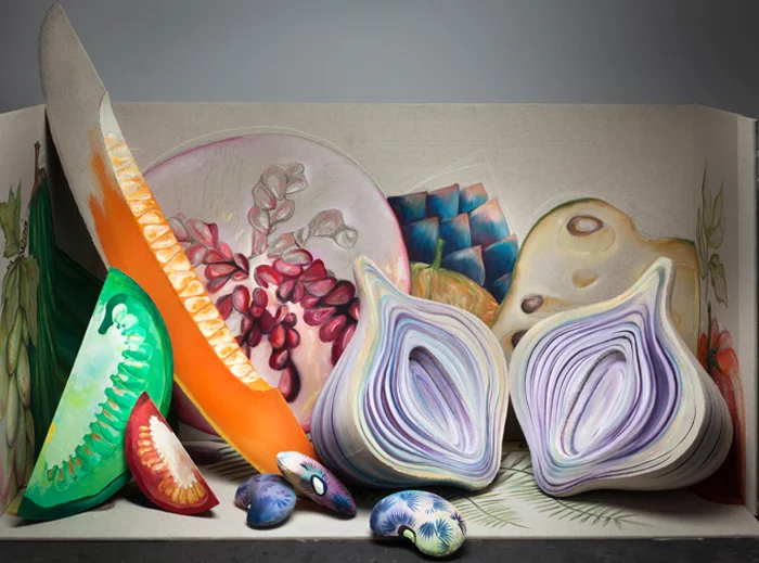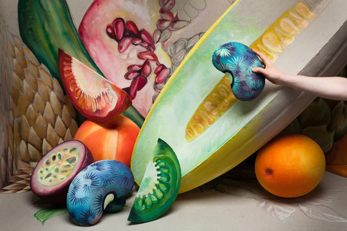 /London designer Bethan Laura Wood was commissioned by French luxury brand Hermes to collaborate on its UK windows in London, Manchester and Dublin this summer. Called The Fruits of Labor and inspired by the work of favorite GlamTribale painter Henri Rousseau, Wood created sets of oversized fruits and vegetables that displayed the brand’s scarves and accessories. Each piece of produce used in the windows are visibly hand-painted in a nod to the Hermes tradition of craftsmanship and unique design. Enjoy more artistry by Bethan Laura Wood.