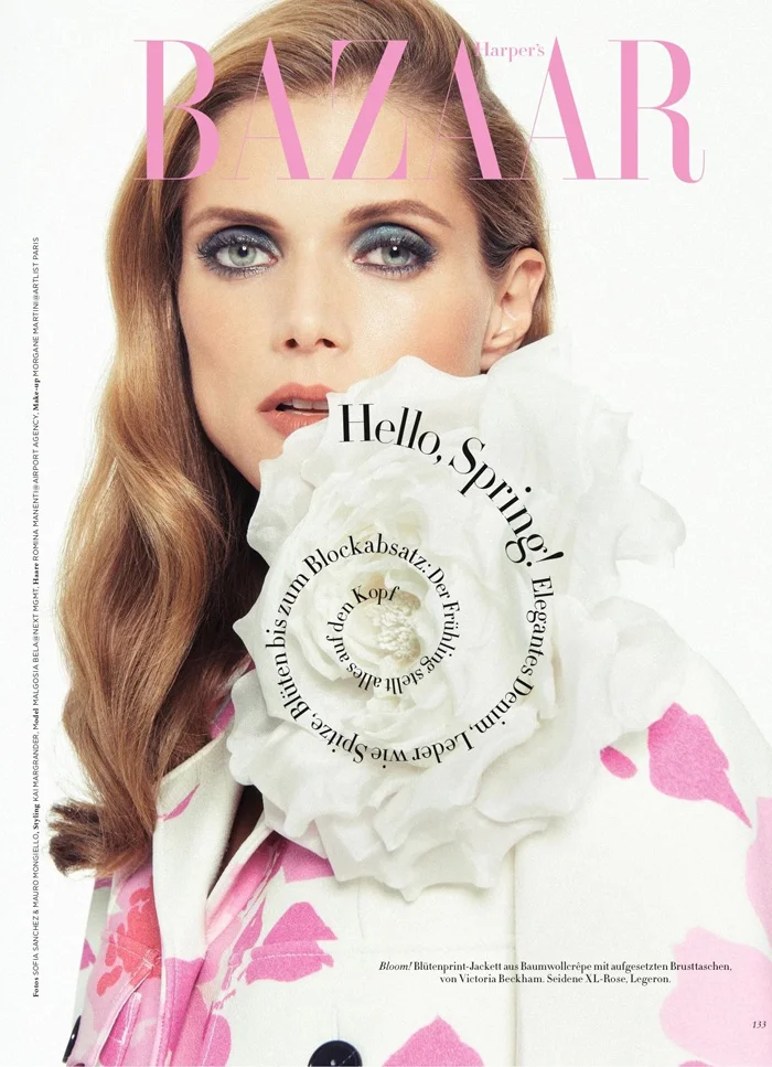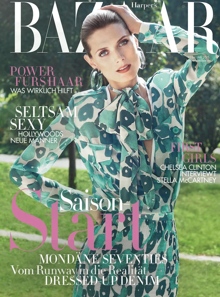 /Top model Malgosia Bela showcases the spring 2015 collections, lensed by Sofia Sanchez & Mauro Mongiello. Kai Magrander styles the 70’s-inspired looks for Harper’s Bazaar Germany February 2015.