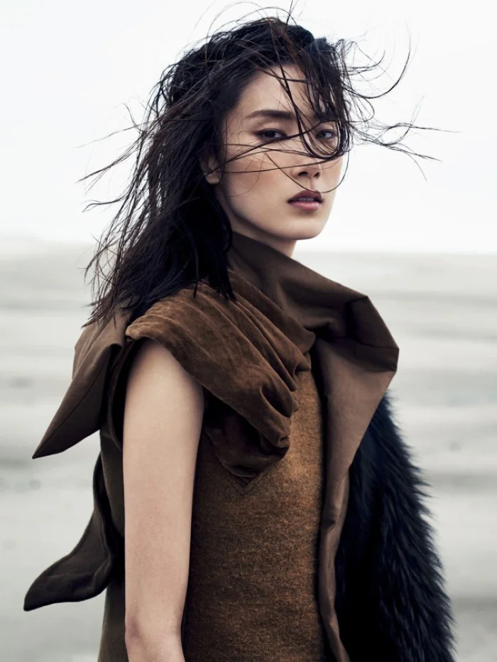 /Model Dylan Xue walks in solitude in Nathaniel Goldberg images styled in warm, pedigree looks by Caroline Newell for Vogue China October 2015./ Hair by Vi Sapyyapy; makeup by Hiromi Ueda