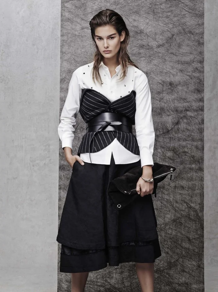 /Model Ophelie Guillermand -- who is having an explosive fall editorial season -- fronts 'A New Attitude', styled in edgy but upscale irreverence by Morgan Pilcher. Photographer Jason Kibbler is in the studio for The Edit October 8, 2015./ Hair by Mark Hampton; makeup by Frankie Boyd
