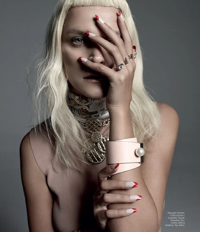 /Top model Carmen Kass is styled by Alberto Murta in images lensed by Xevi Muntane for Harper's Bazaar Spain October 2015./ Hair and makeup by Victor Alvarez