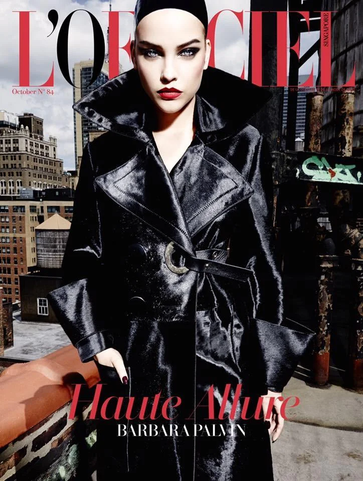 /It isn't often that VS Angel Barbara Palvin does vampy seduction editorials, and when she does -- look out world. Barbara makes erotic mincemeat of a black Calvin Klein Collection trench coat for the cover of L'Officiel Singapore's October issue. Lensed by Jack Waterlot with styling by Jumius Wong & Jack Wang, Barbara explodes on the fashion scene wearing Saint Laurent, Loewe , Max Mara and more in 'Electrifying'. / Makeup by Yumi Lee; hair by Fernando Torrent