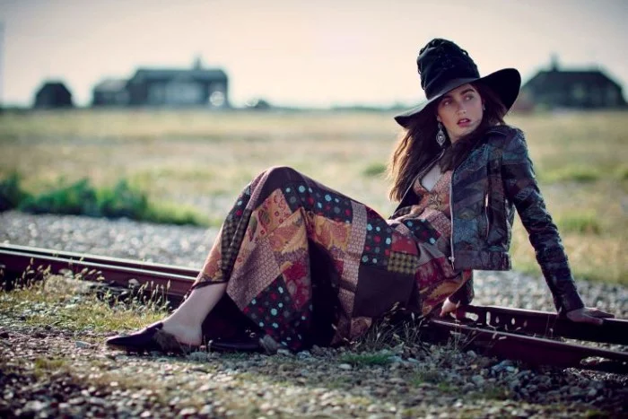 /Model Matilda Lowther does bohemian hat tricks styled by Miranda Almond in an eclectic mix. Photographer Serge Leblon is behind the lens for Vogue Turkey October 2015./ Hair by Rahael Salley; makeup by Maxine Leonard