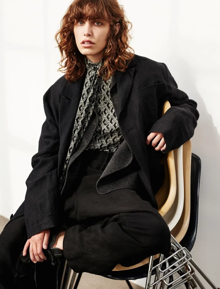 /Model Lorelle Rayner is styled in menswear androgyny that channels women like Fran Leibovitz, Diane Keaton and Isabella Rossilini by Emelie Johansson. Hasse Nielsen images in Cover Magazine October 2015./ Hair by Cim Mahony; makeup by Trine Skjoth