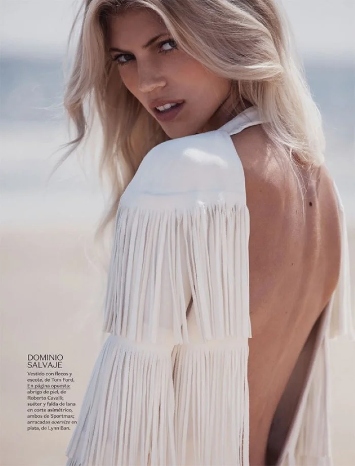 /Devon Windsor reminds us that black is easily rivaled by white, if the fashion goal is a subtle sensuality. Stylist Sarah Gore Reeves chooses all white looks from Chanel, Louis Vuitton, Fendi and more for 'Brisa De Vida', a free-spirited look at winter white dressing. Photographer Dean Isidro captures Devon for Vogue Mexico November 2015./ Hair by Roberto Do Cuia; makeup by Eric Polito