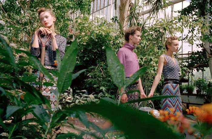 /Models Clementine Deraedt, Shanna Jackway and Eliza Thomas garden with fashion passion in 'Belles Plantes', styled by Irina Marie. Photographer Michal Pudelka captures the hothouse scene for Numero #167 October 2015./ Hair by Ali Pirzadeh; makeup by Sharon Dowsett