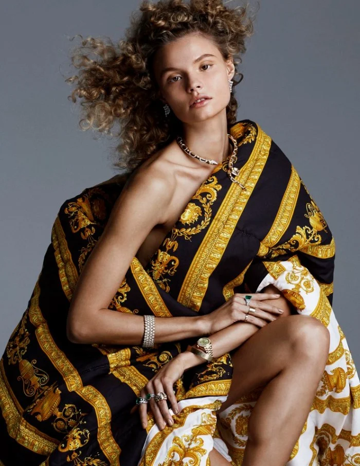 /Model Magdalena Frackowiak fronts 'El Siglo de Oro', bringing comforters and home furnishings into fashion's golden age, styled by Marina Gallo Photographer Alvaro Beamud Cortes is in the studio for Vogue Spain December 2015./ Hair by Olivier Lebrun; makeup by Luciano Chiarello
