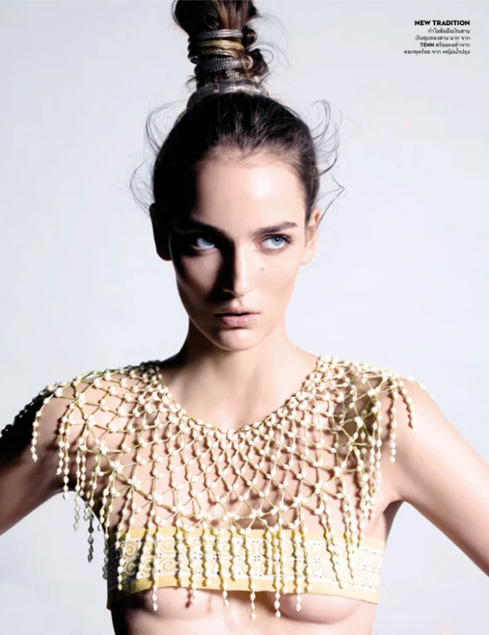 /Model Zuzanna Bijoch joins Kanyanat Bamrungphong , Baiboon Arunpreechachai and Si Tanwiboon in ‘The Grand Voyage’, styled by Jirat Subpisankul. Photographer Nat Prakobsantisuk captures the folkloric-inspired elegance for Vogue Thailand February 2015.