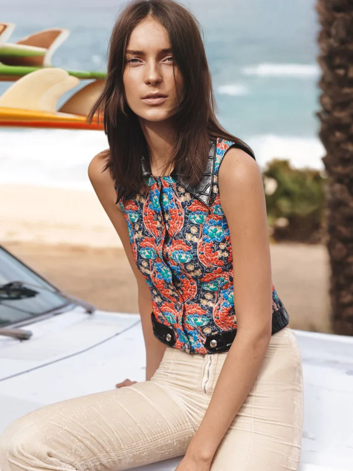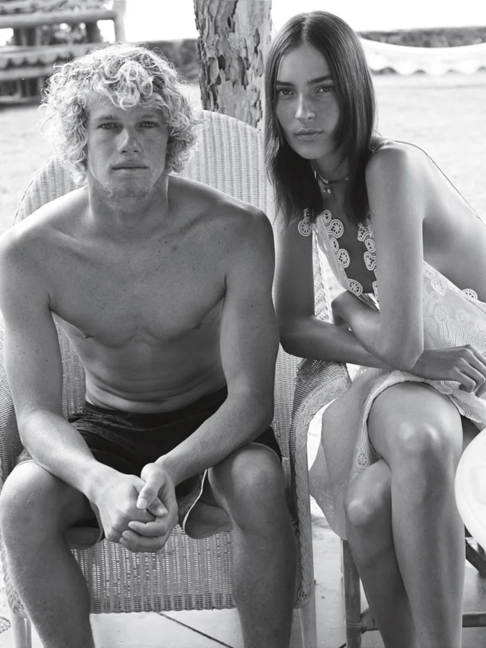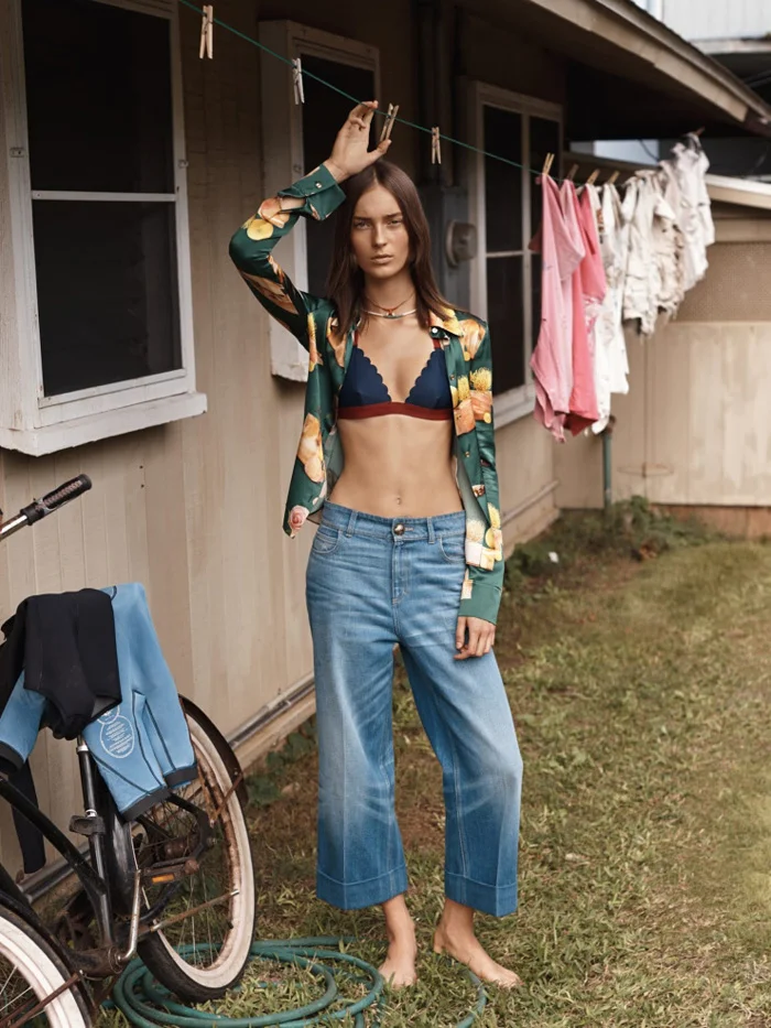 /Model Julia Bergshoeff kicks back, styled in at-ease, beach and country weekend looks by Clare Richardson for‘Hawaii Five Oh’. Photographer Josh Olins snaps the simplicity rules looks for Vogue UK’s April issue. / Hair by Esther Langham; makeup by Maki Ryoke
